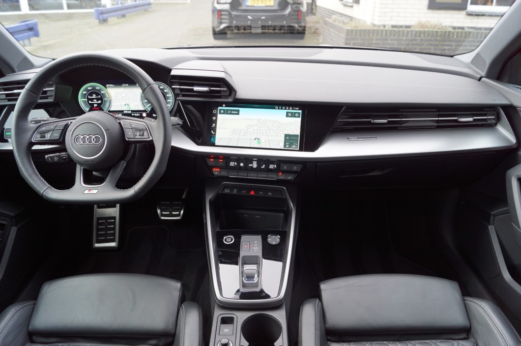 Remzadels rood, Blackpakket, MMI Navigatiesysteem plus met touch, Audi Soundsysteem, Virtual cockpit, RS Schaalstoelen in leer uitgevoerd met Witte stiksels, Stoelverwarming voor, 19'' Lichtmetalen velgen, Multifunctioneel sportstuur onderkant afgevlakt incl. schakelflippers, S3 diffuser, Adaptieve Cruise control, Parkeersensoren voor en achter, Ambiente binnenverlichting, 2 zones klima automatik, DAB+ Radio, Gecoat glas vanaf middenstijl, Achterspoiler, LED koplampen incl. dynamische knipperlichten achter, Automatisch grootlicht assistent, Drive select met Sportonderstel, Apple carplay, Draadloos telefoon opladen, Met uitwijkassistent met afsla-assistAuto bezichtigen op afspraak!Garantiepakket (€495,-)Dan kiest u voor 100% zekerheid en garantie.•- Nieuwe APK- Op peil brengen van olie, lucht en koelvloeistof- Tenaamstelling van de auto- Vrijwaren van de inruilauto- Minimaal half volle tank brandstof- 6 maand garantie- Onderhoudsbeurt volgens schema